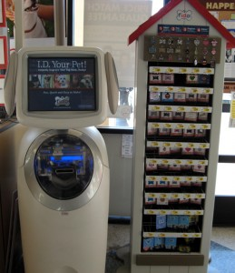 Here’s what I propose: Just like you check the batteries in your smoke detectors once a year, say on New Year’s Day, be sure to regularly check your contact information on your dog’s tag to make sure it’s legible and current. The telephone number that is most likely to reach you quickly makes the most sense. Your home phone number won’t do much good if you’re gone all day. “Big Box” pet supply stores make it easy to engrave a tag yourself in minutes! They even have cool designs on the reverse side these days, like the Peace sign that Niki is modeling.